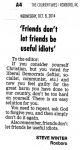 This is my letter to the editor in the local paper 10/8/2014 "Friends don't let friends be useful idiots." Please share this if you like it.